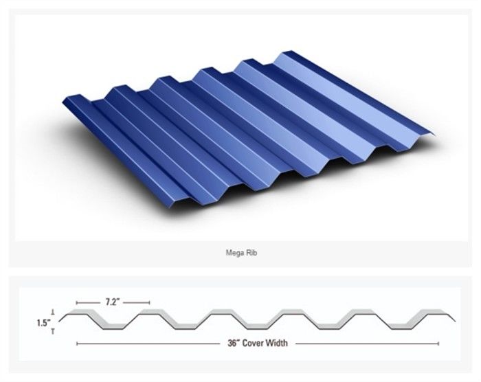 Mega-Rib is a 7.2 exposed fastener panel that provides optimum strength and spanning capabilities. Mega-Rib is a metal roof and wall panel that is equally well suited for industrial and commercial applications. Installed horizontally, Mega-Rib's bold ribs provide a hard to beat architectural statement.