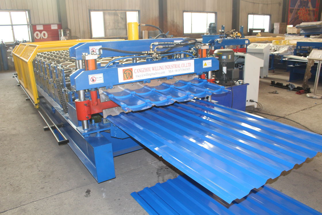 Double Layer Roof Roll Forming Machine can produce two different profile drawings on one machine, saving more space and money compared with using two different machines.