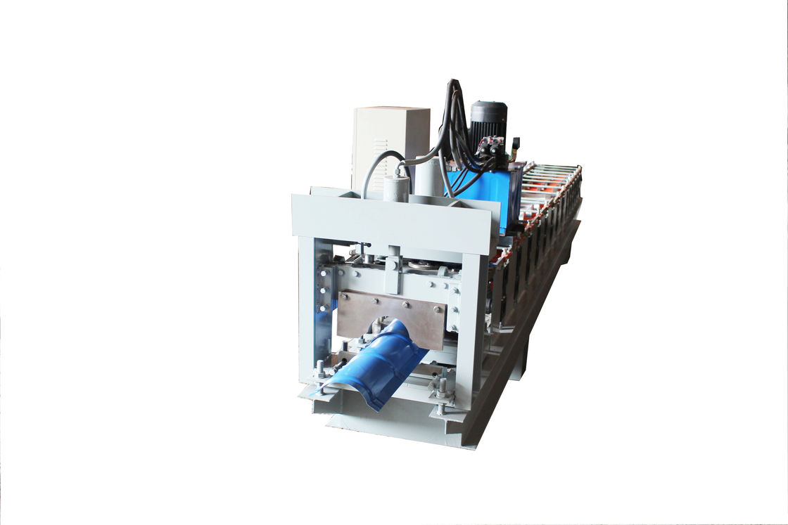 The ridge cap roll forming machine can roll metal ridges and is mainly used for colored roof tiles. The entire roll forming production line is composed of uncoiler (mainly composed of uncoiler and its base), gear rigging, rolling mill stand and main machine, pressurizing system, cutting equipment, hydraulic system, control system, and product support.