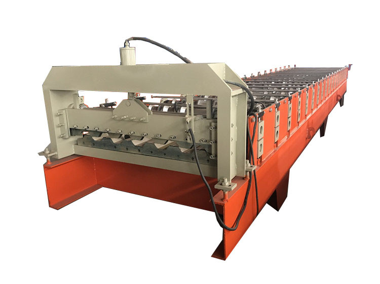 Hydraulic motor roof panel roll forming machine. Power is from hydraulic motor. Hydraulic oil supply the power to roof panel roll forming machine