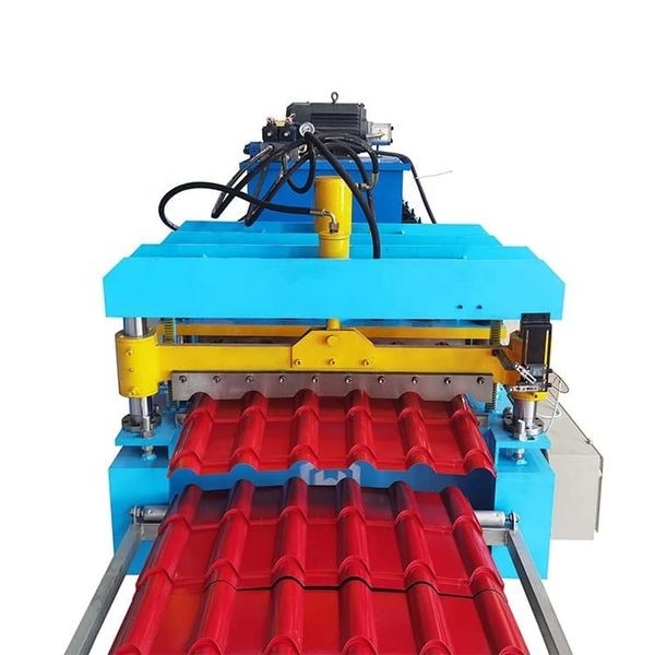 Indonesia Super High Speed Step Tile Roofing Roll Forming Machine Low Noise.Metal Tile Shingle Roofing Sheet Roll Forming Machine is one most popular type of roll forming machines. It makes different shape of color steel roof sheet, which is used for buildings, factory, supermarket ect. For this machine, it suit coil width is 1250mm, thickness range is from 0.3mm to 0.8mm. We adopt wall panel type to make machine frame strong. Usually it can run with the max speed to 7m/min, PLC with touch screen operation make the machine simple and easy for usage.