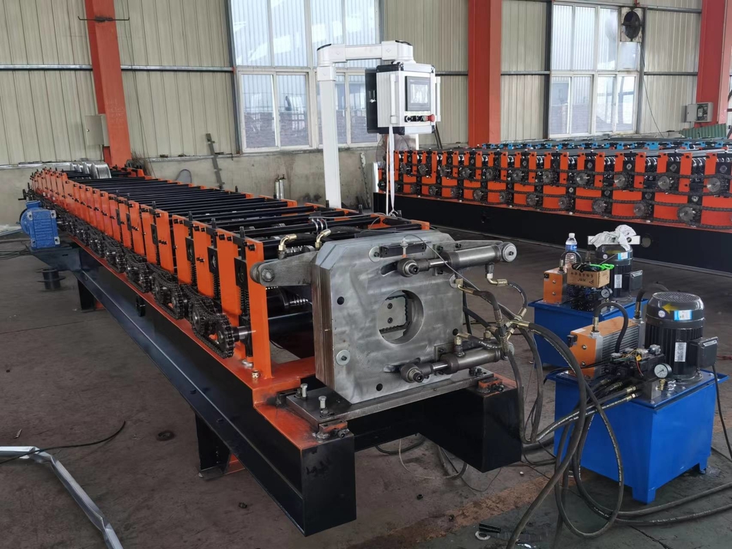 This downpipe roll forming machine is for steel sheet or aluminum sheet cold-form industries. It can roll-forming the steel sheet according to the customer’s requirement continuously, automatically cut to length.