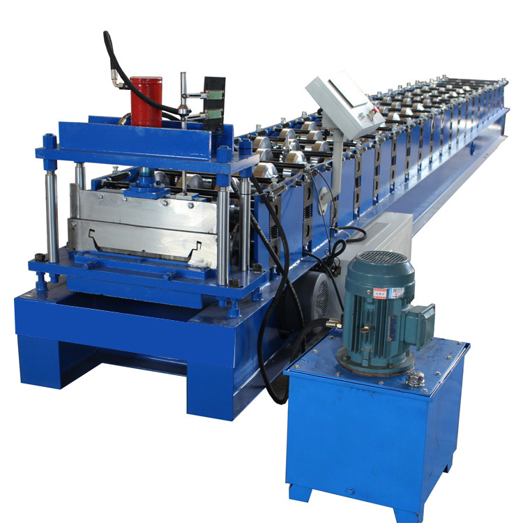 The advantages of Standing Seam Roofing Panel Roll Forming Machine Portable Full Automatic are as follows: 1.Low cost, light weight but high strength, short building period, and re-cycle use. 2.Easy operation, low maintenance cost. Rollers manufactured from high quality 40Cr steel, CNC lathes, Heat Treatment.with black treatment or Hard-Chrome Coating for options. Body frame made from 350# H type steel by welding. Made by high quality mold steel Cr12 with heat treatment.Cutter frame made from high quality 20mm steel plate by welding.hydraulic motor: 4KW, Hydraulic pressure range: 0-16Mpa